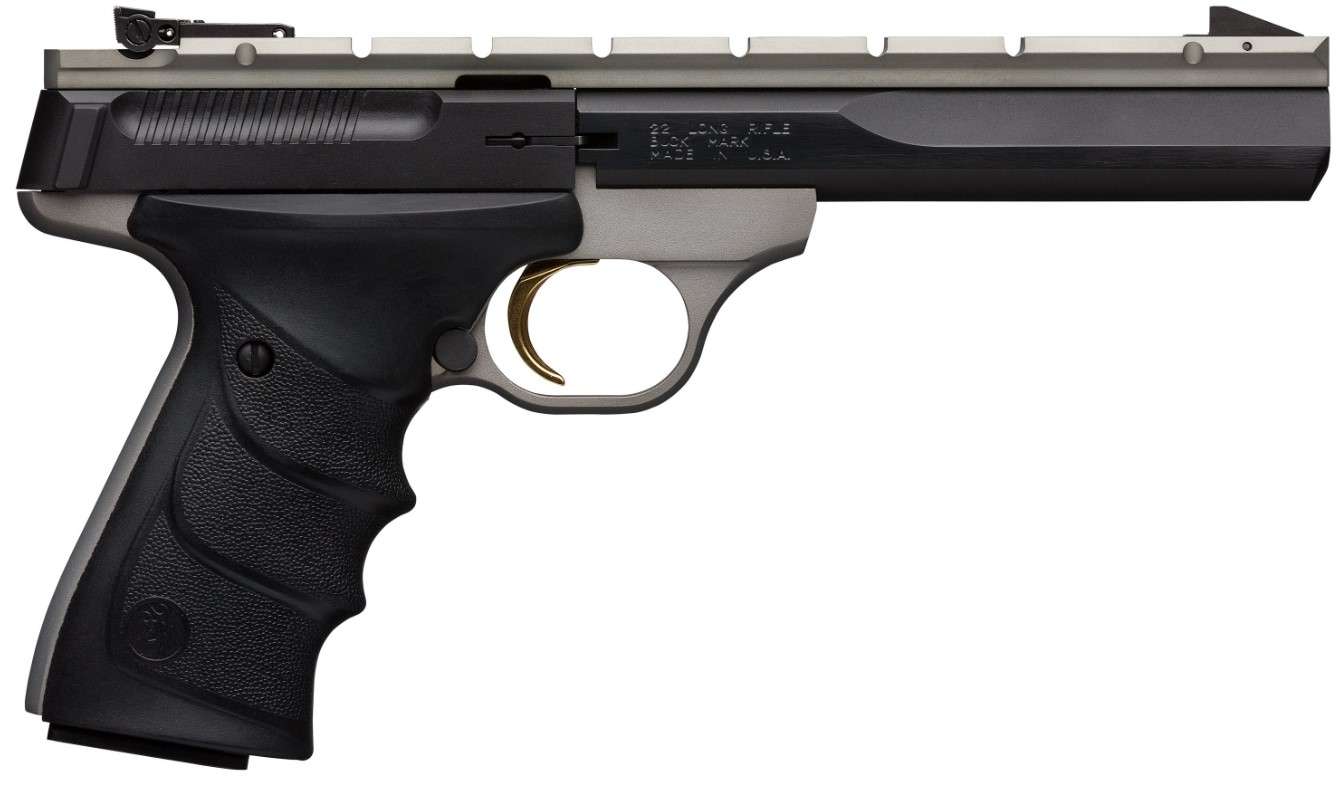 Browning’s Buck Mark Contour features a special contour steel barrel, Weaver-style optics rail, URX grips, Patridge-style front sight and a 16-click adjustable Pro-Target rear sight. Includes two magazines and a pistol rug.