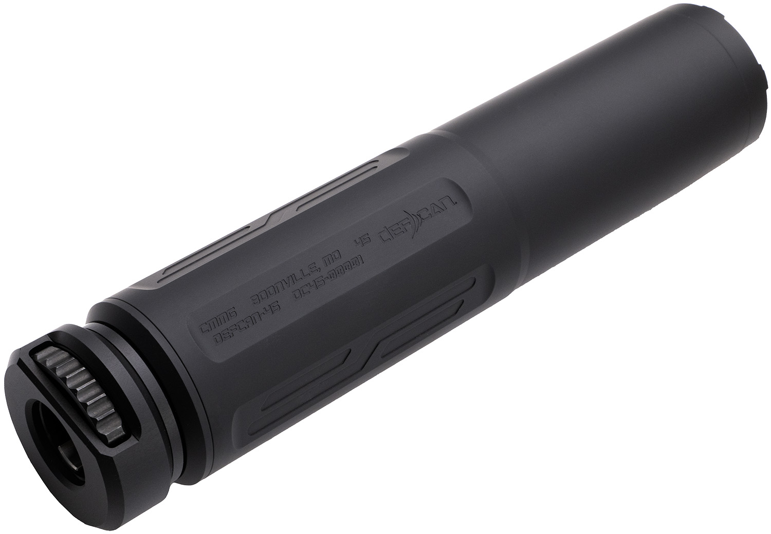 The DEFCAN-45 is the .45 ACP PCC/PDW suppressor you’ve been waiting for. Made from precision machined stainless steel and aluminum, the DEFCAN-45 features a high-temperature Cerakote finish and is full-auto-use rated. The .45 ACP DEFCAN comes with a common dimension .45 cal 3-lug muzzle device and our QD tri-lug suppressor HUB mount. With the HUB pattern 1-3/8″ threaded suppressor body, switching to a different mounting system is easy. Your DEFCAN will always be ready for any changes that may come.