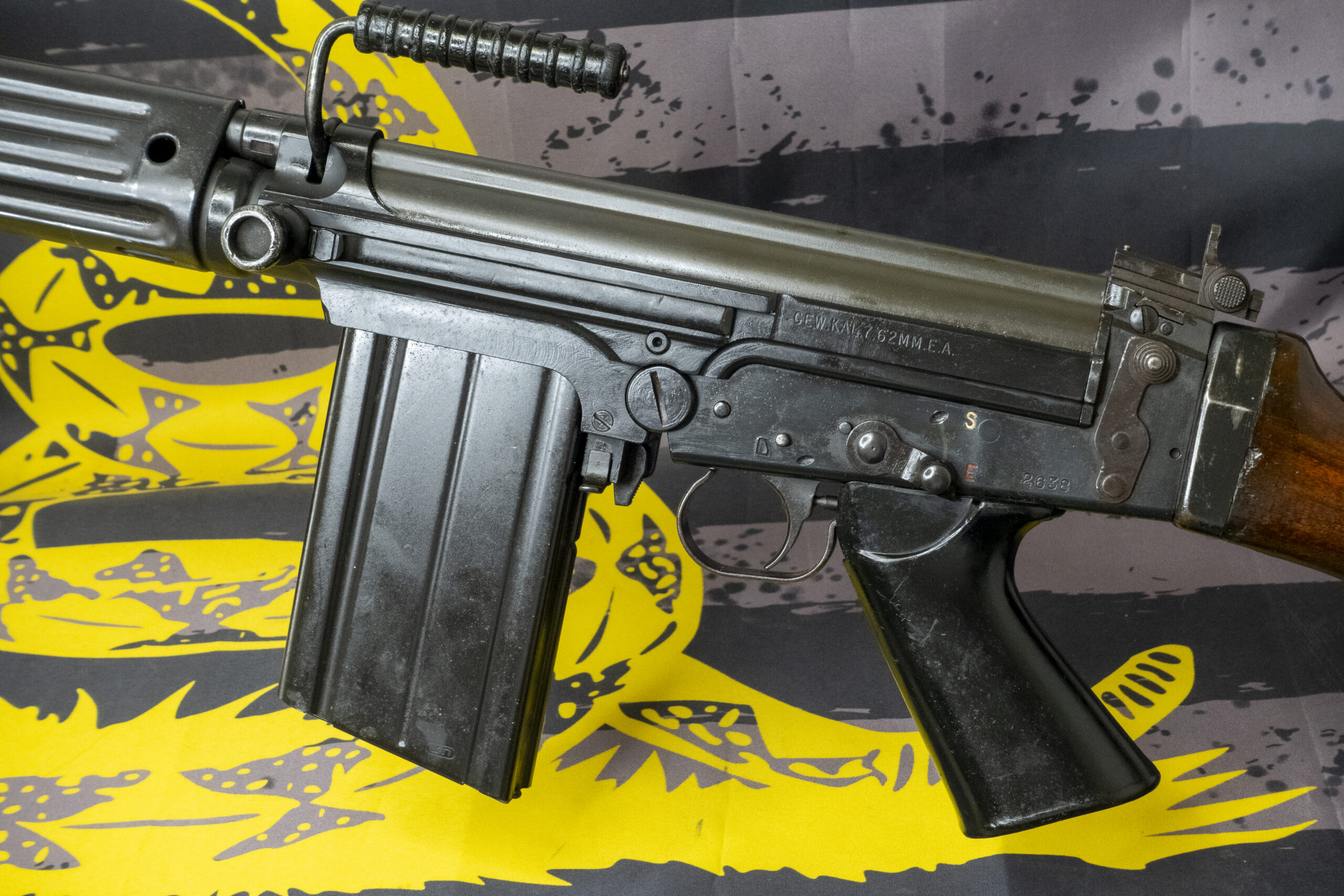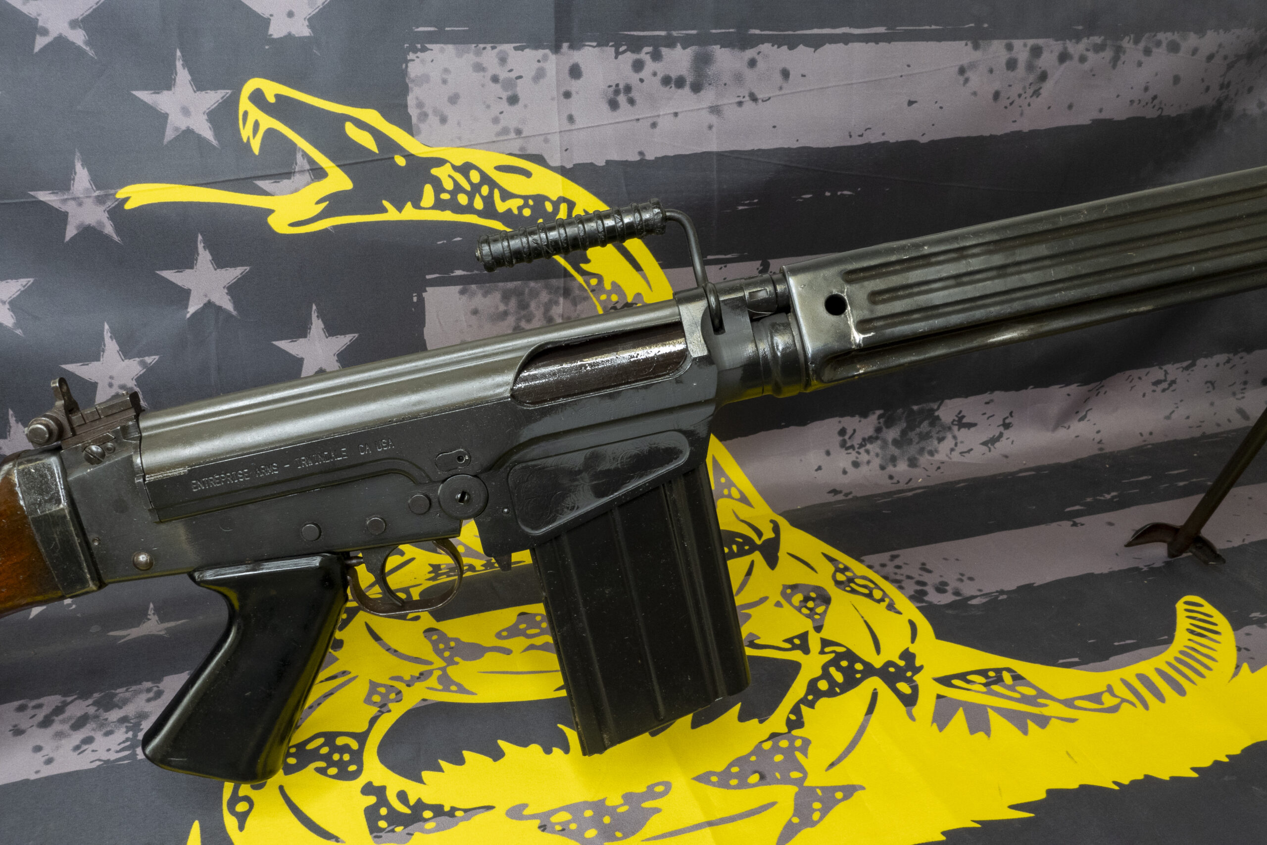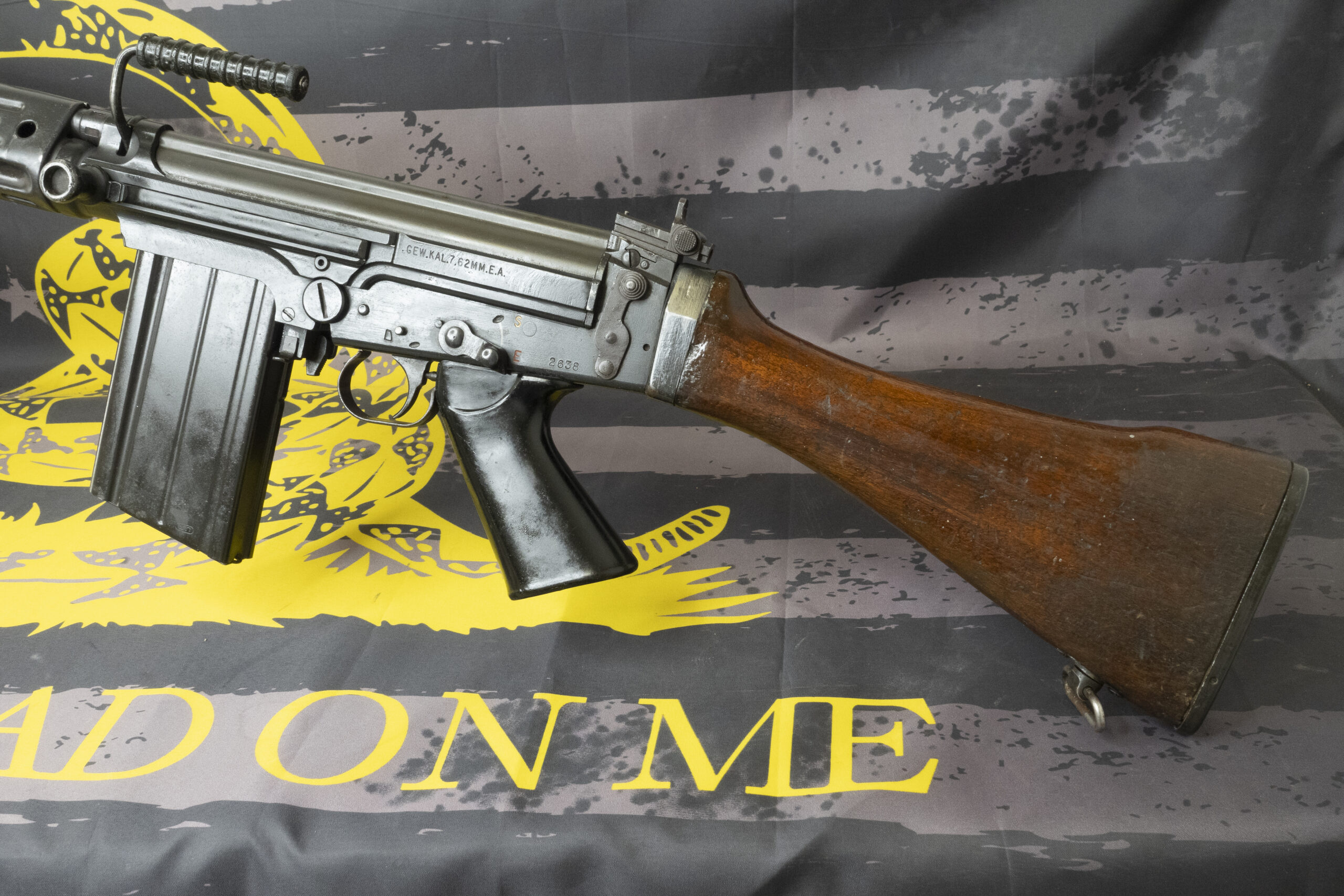 Iconic West German G1 FN FAL, a legendary battle rifle known for its robust design and historical significance. Chambered in 7.62 NATO, this semi-automatic rifle offers exceptional reliability and classic styling.
