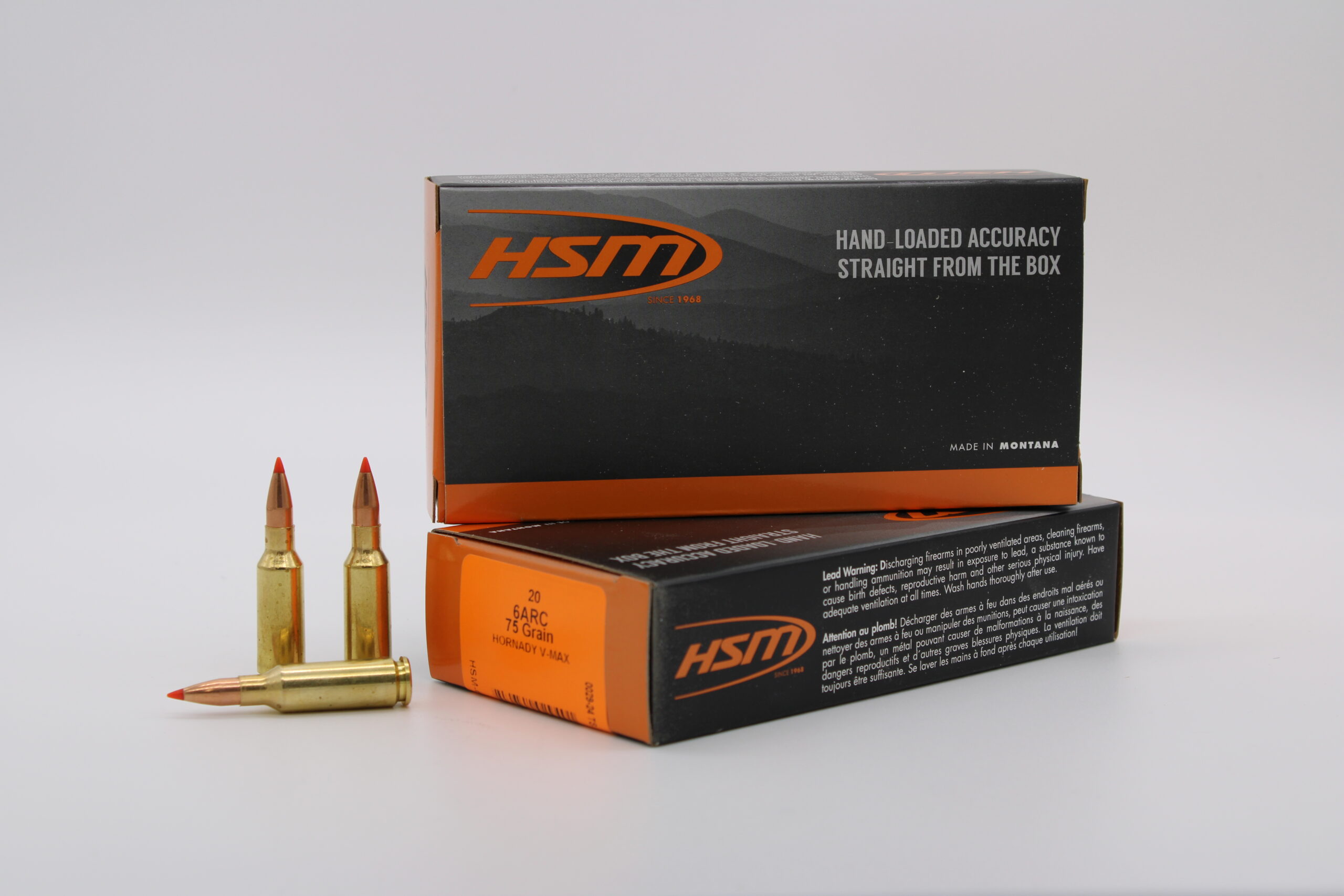 HSM AMMUNITION 6MM ARC 75GR V-MAX 20RD BOX 25 BOXES PER CASE