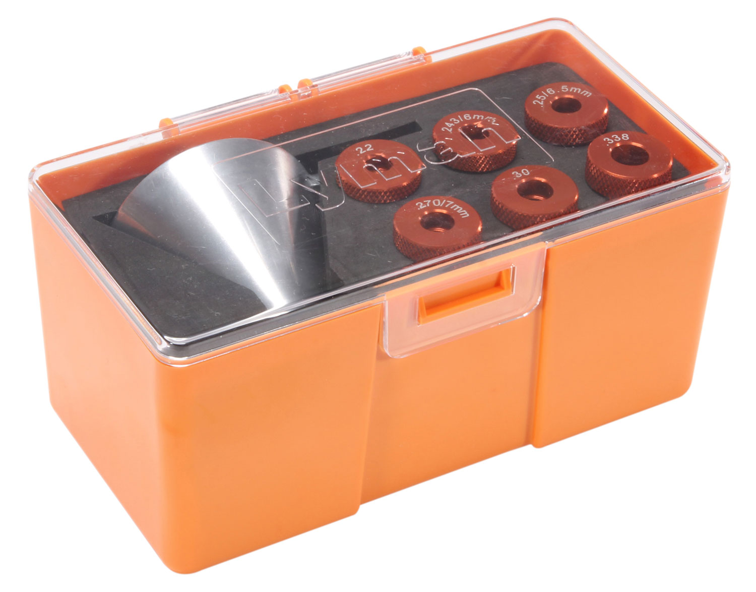 Lyman’s Precision Funnel Set is the perfect system for the serious reloader. The Brass Smith Precision Funnel Set is made to be completely static free, no more powder clinging to surfaces which can happen with lightweight plastic funnels. The solid construction and quality of the Brass Smith Precision Funnel Set will be apparent in its first use. This is no “one size fits all” funnel, it uses precision machined, caliber specific inserts to properly fit the case neck. The inserts can be quickly and easily installed by simply pushing them into place and then pulling them out when changing calibers. The Brass Smith Precision Funnel Set also comes with a padded storage case that neatly stores extra inserts when not in use. The funnel comes with inserts for .22, 243/6mm, 25/6.5mm, 270/7mm, .30, and .338 caliber rifle cartridges.