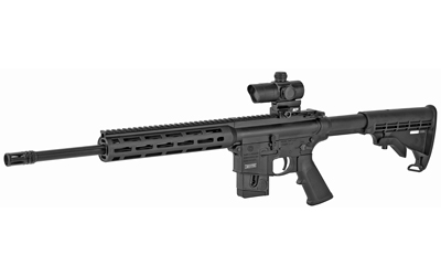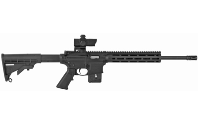 The M&P15-22 Sport rifle is now available in an optics ready configuration complete with a factory mounted red-green dot optic. With a variable intensity dot in both red and green, and adjustable for windage and elevation, the included optic allows for a quick and easy sighting solution. This model has the following features: A2 Flash Hider – 10″ M&P Slim Handguard with Magpul M-LOK – 2″ M-LOK Rail Panel Included – Functioning Charging Handle – 2-Position, Receiver Mounted Safety – M&P Red/Green Dot Optic w/ 4 MOA Dot