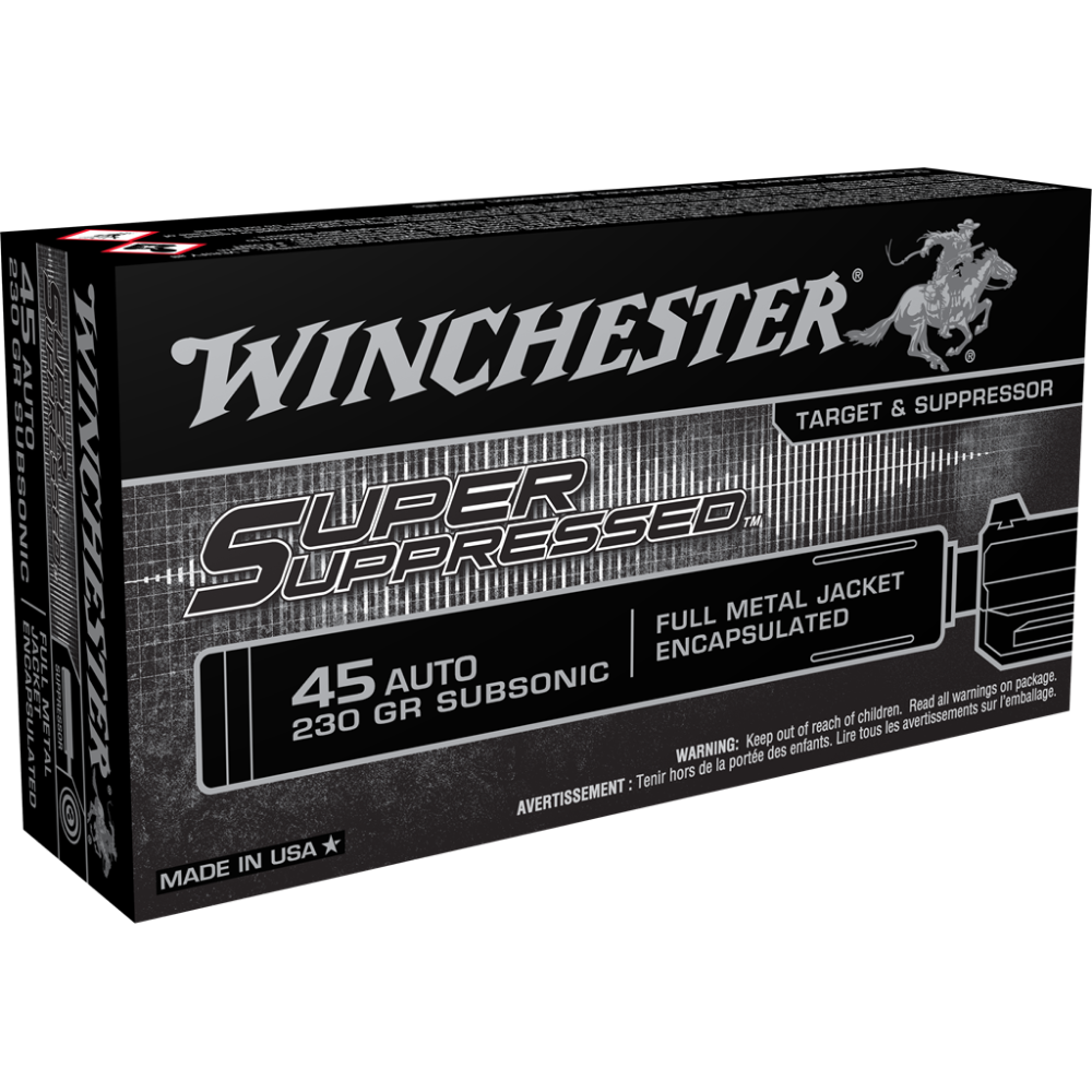 Winchester Super Suppressed Handgun Ammunition .45 ACP 230 gr. FMJE 850 fps 50/ct